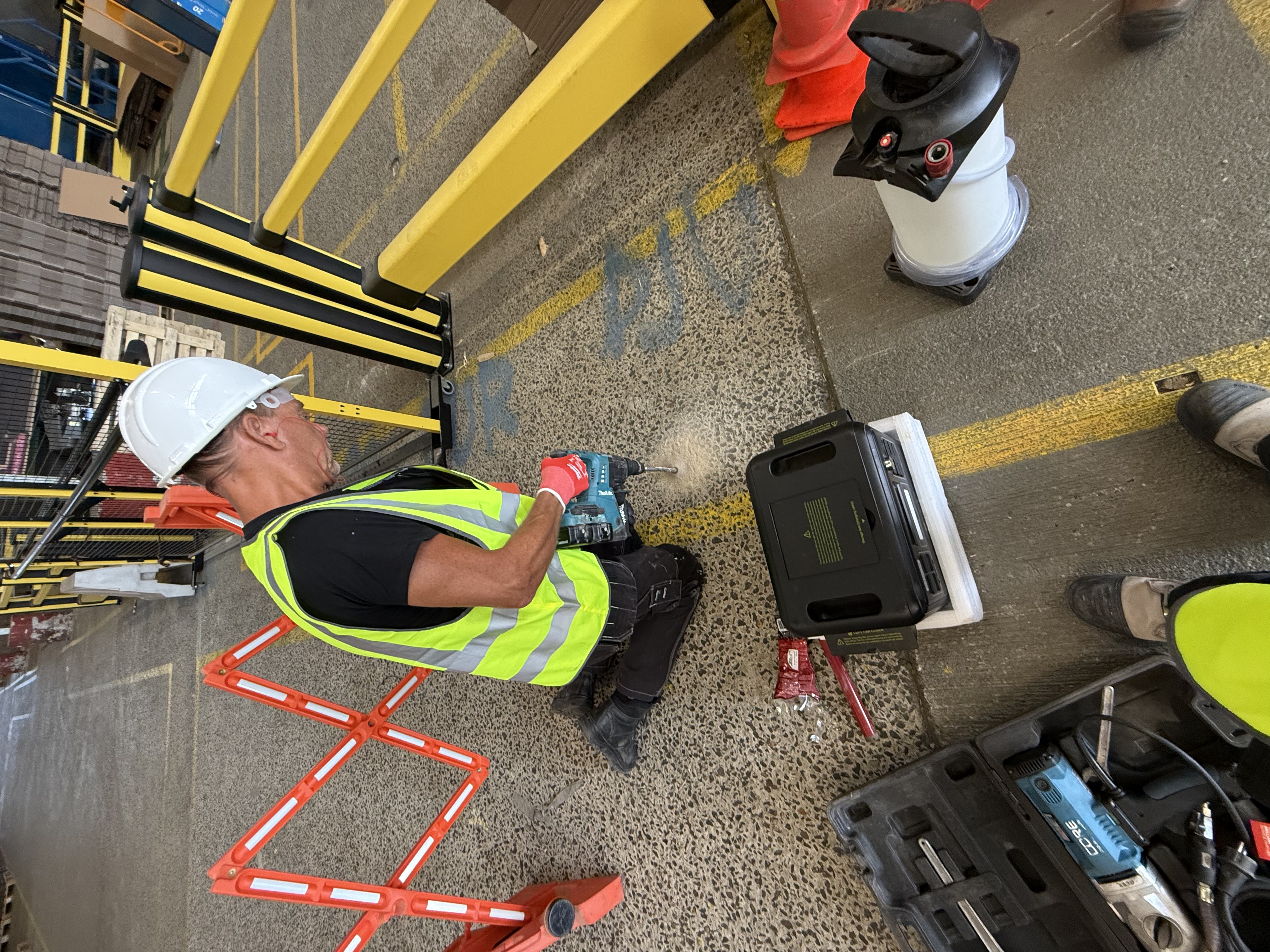 Hier moesten wij sparing boren in een betonnen vloer van een distributieloods zodat Westland Infra gaslekkages kon zoeken onder de vloer